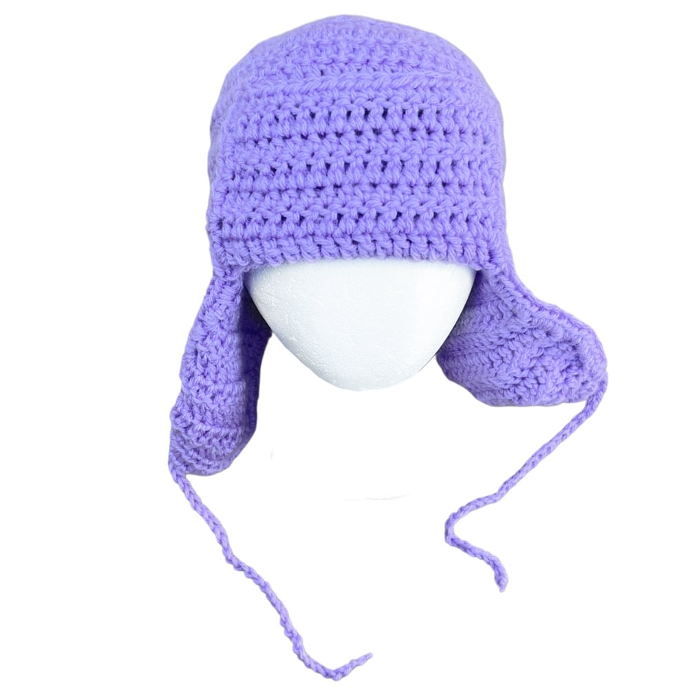Warm ear flaps tie up as pictured above
